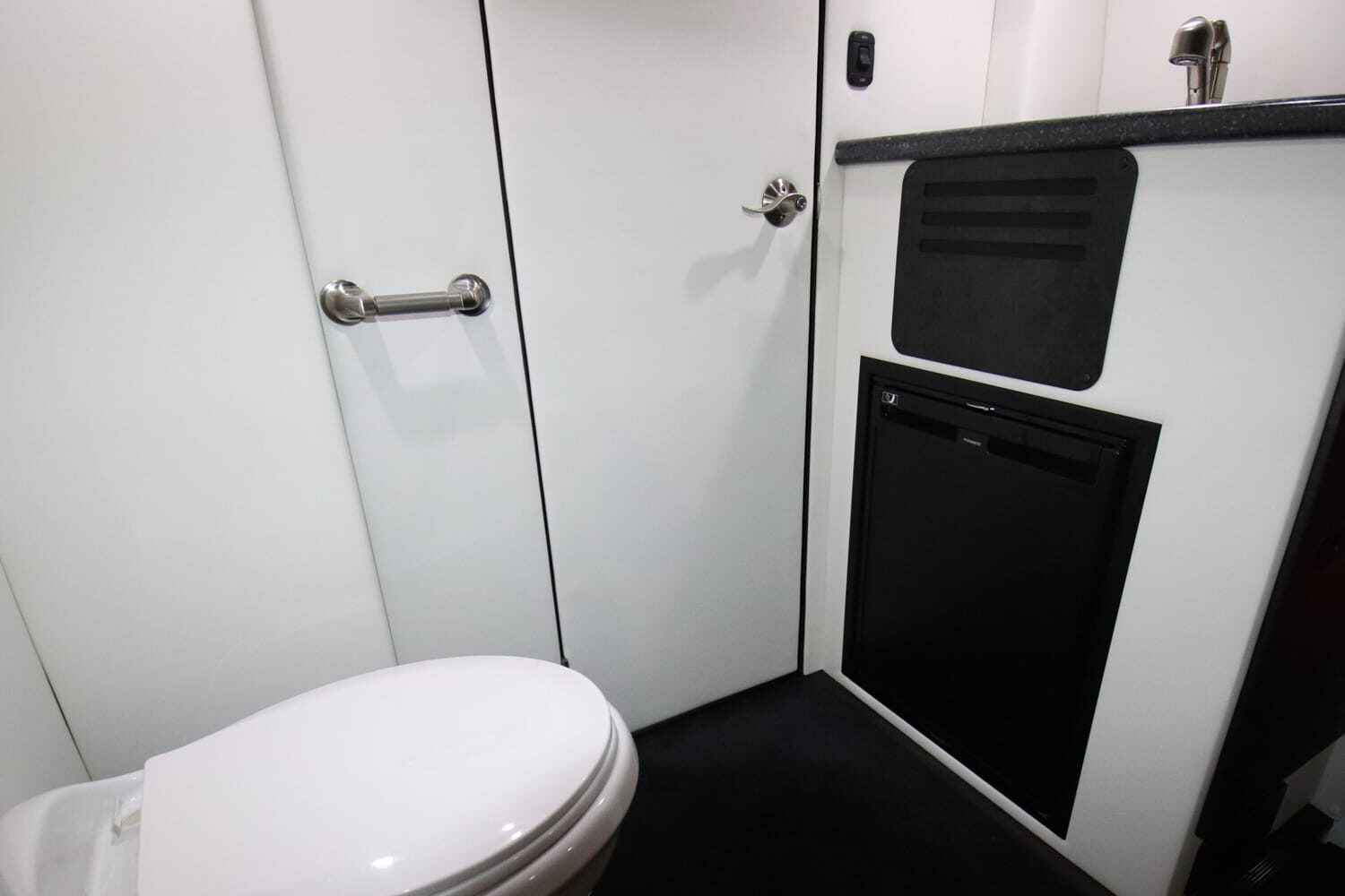 • Rear Bath with Toilet, Refrigerator, Microwave, and Sink